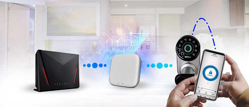 La conectividad del dispositivo, es mediante un modulo de bluetooth / Wifi para el enlace entre el modem de internet de la casa u oficina con la c erradura inteligente ZKTeco ML300.